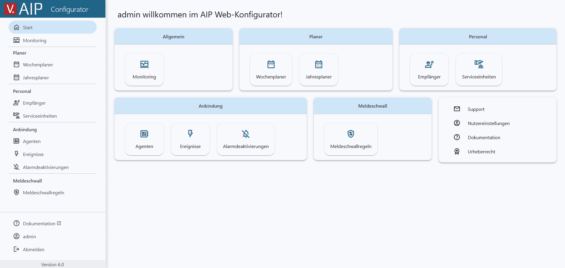 The user interface of the AIP Web Configurator has been completely redesigned, modernizing the user experience: new home page, clear design, search functions, and improved configuration logic. The configuration area now also includes monitoring, agents, events, message flood, and service units. Configuration via the Windows application remains available, but in the future, configuration will be gradually transferred entirely to the web.