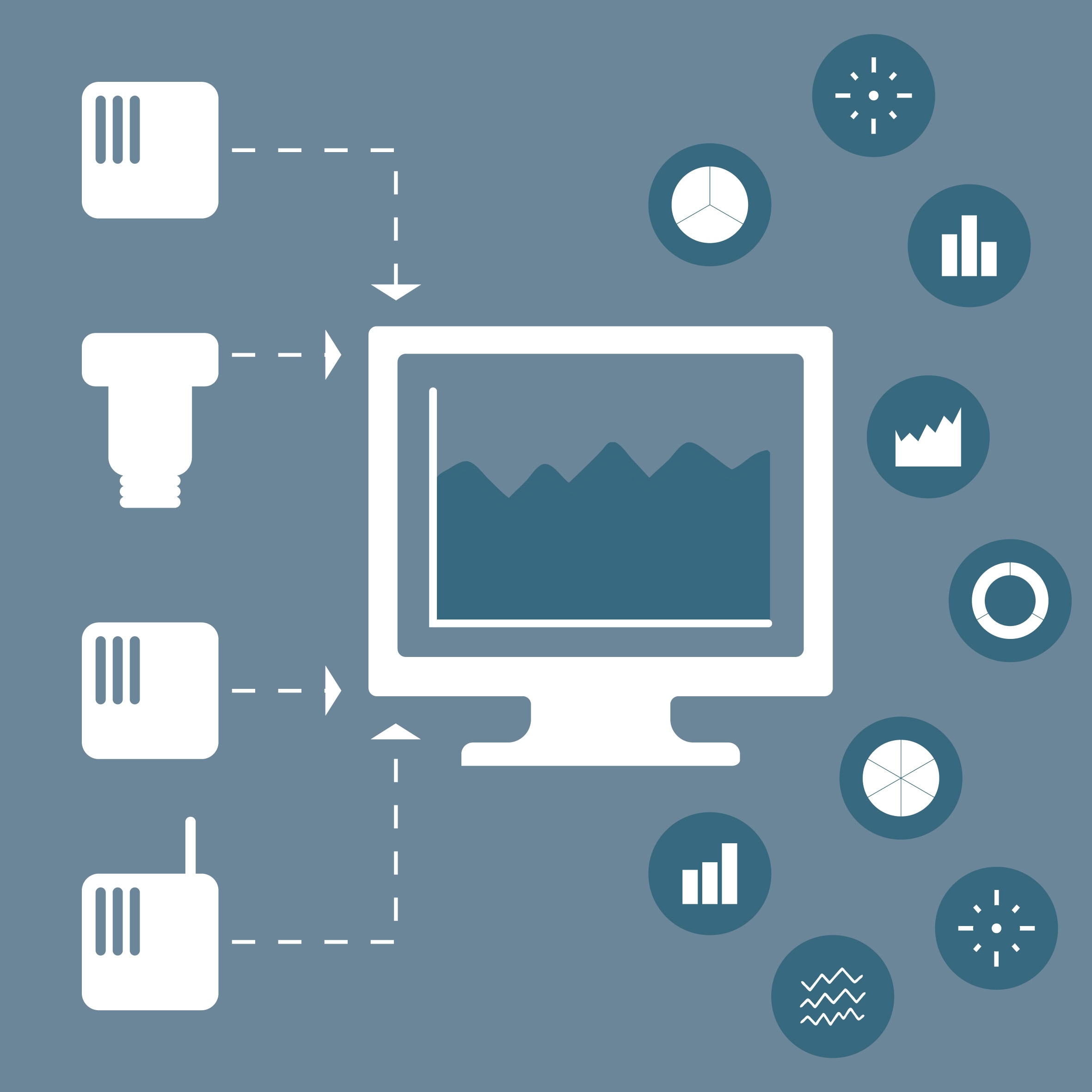 Mit mehr als 40 unterstützten Schnittstellen kann acron Daten von fast jedem Gerät oder SCADA-System auslesen. Damit werden nahezu alle gängigen Kommunikationsmethoden moderner Geräte abgedeckt, darunter: